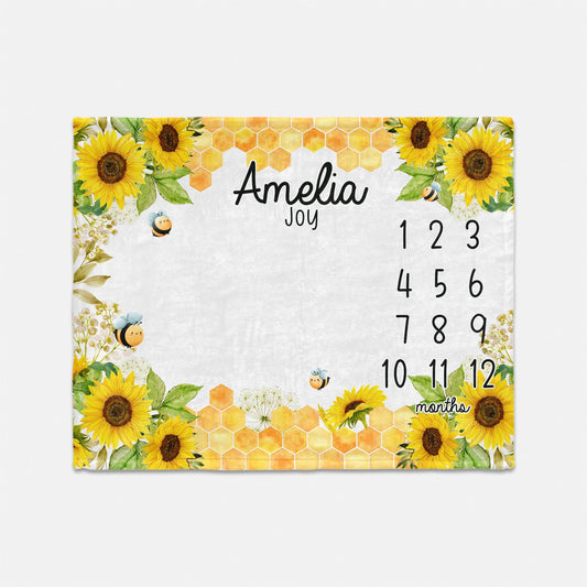 Sunflower Honey Bee Baby Milestone Blanket, Girl G67