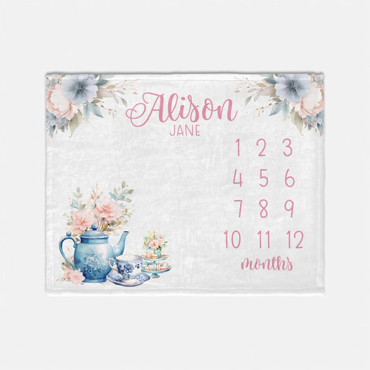 Tea Party Baby Milestone Blanket, Girl G71