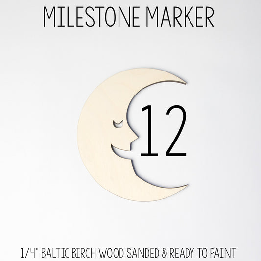 Crescent Moon Face Wooden Milestone Marker