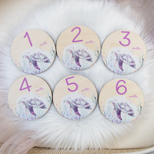Girl Turtle Wood Milestone Cards, Ocean Life O33