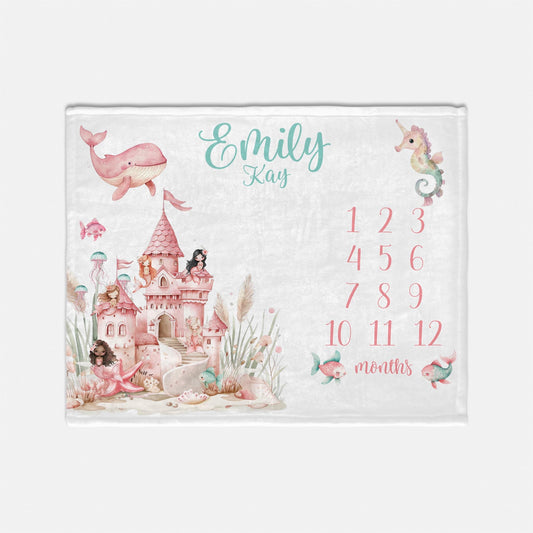 Mermaid Castle Milestone Blanket, Ocean Life O43