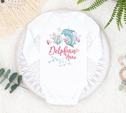 Under The Sea Baby Bodysuit, Dolphin Ocean Life Baby Outfit O23