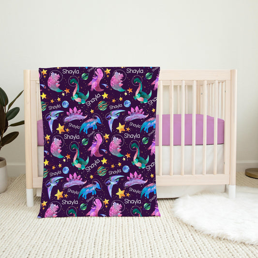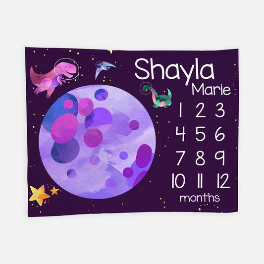 Girl Space Dinosaurs Baby Milestone Blanket, T47