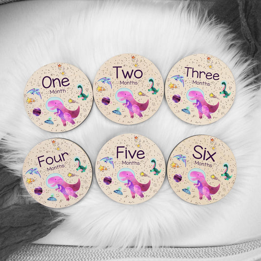 Girl Space Dinosaur Wood Milestone Cards, T47