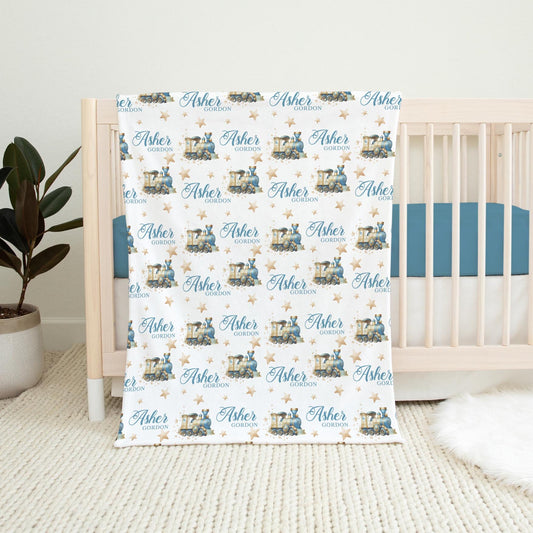 Train Nursery Baby Blanket, Boy Locomotive Nursery B75