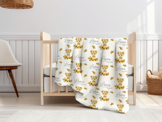 Lioness Sunflower Baby Blanket, Safari Girl S71