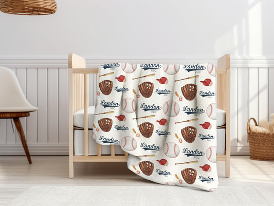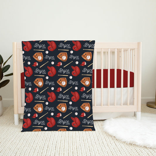 Baseball Swaddle Set, Personalized Sports Baby Blanket B35