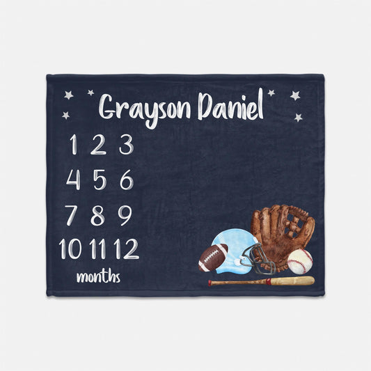 Boy Baseball and Football Milestone Blanket, B1 B43