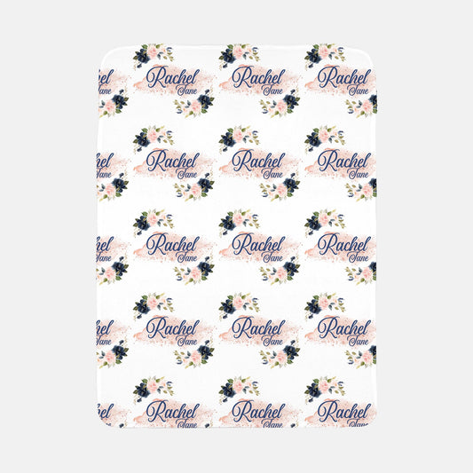 Navy Blush Rose Girl Swaddle Blanket, F16