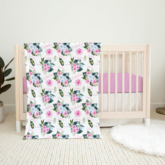 Tropical Orchid Baby Swaddle Blanket, Tropical Nursery F73
