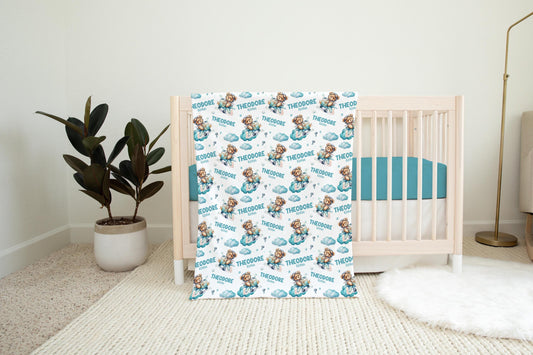 Personalized Bear Airplane Baby Boy Swaddle Blanket, T62