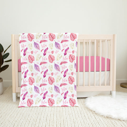 Pink Palm Leaves Baby Swaddle Blanket, Tropical, G56