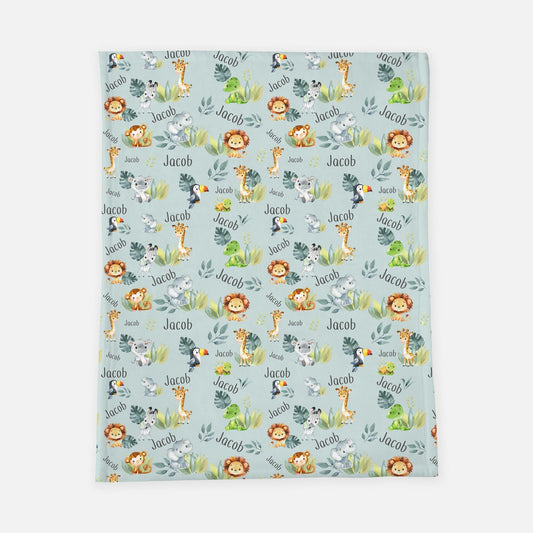 Safari Blanket, Lion, Elephant, Giraffe, Zebra Swaddle Set S3