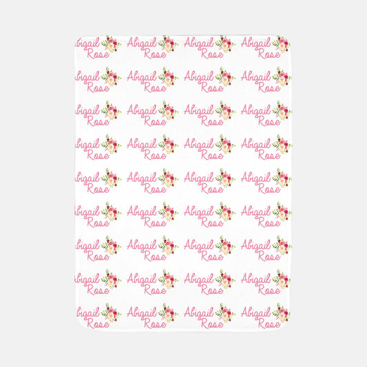 Personalized Pink Floral Baby Swaddle Blanket, Girl