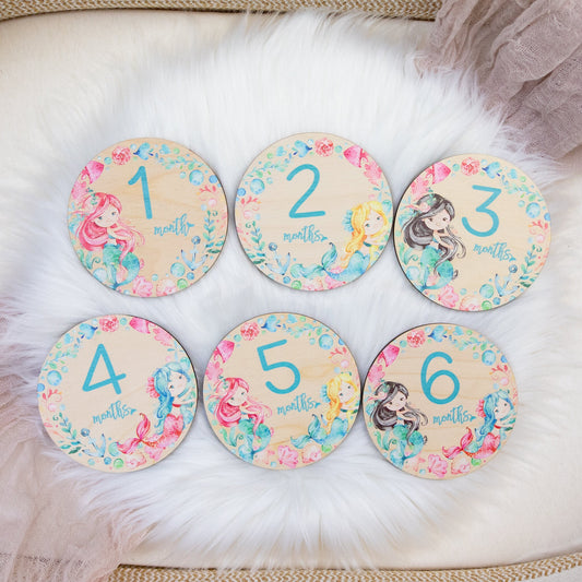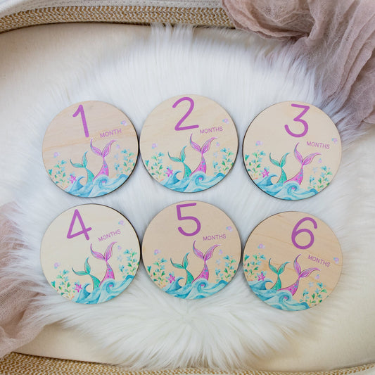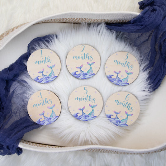 Mermaid Wood Milestone Cards, Ocean Life O9