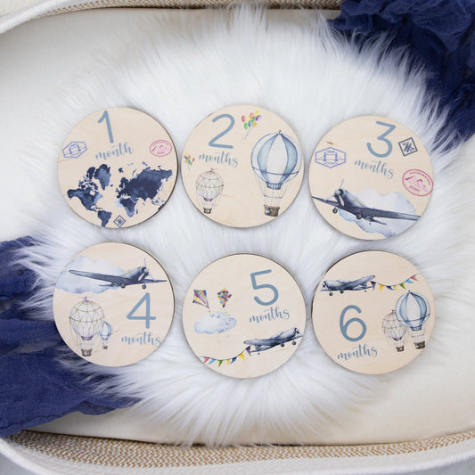 World Map Wood Milestone Cards, Adventure Awaits Nursery Theme T1