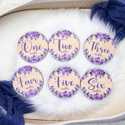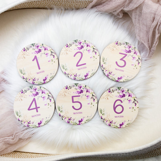 Lavender Bouquet Wood Milestone Cards, Floral F89