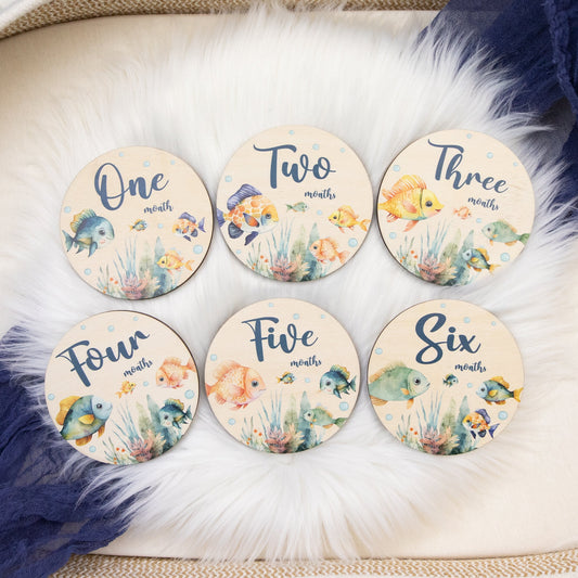Under The Sea Wood Milestone Cards, Tropical Fish Nursery Theme O36