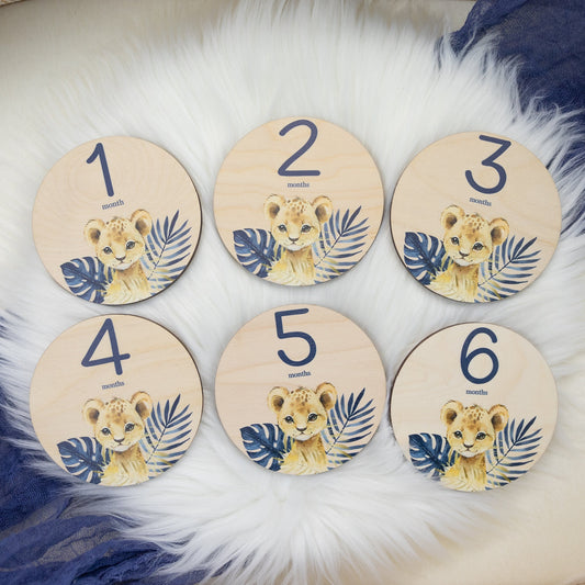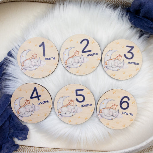 Safari Moon Milestone Cards, Wood Photo Prop, Elephant Giraffe Lullaby Nursery Theme S49