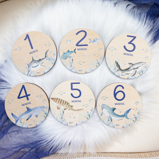 Shark Milestone Cards, Wood Photo Prop, Under The Sea Nursery Theme O32