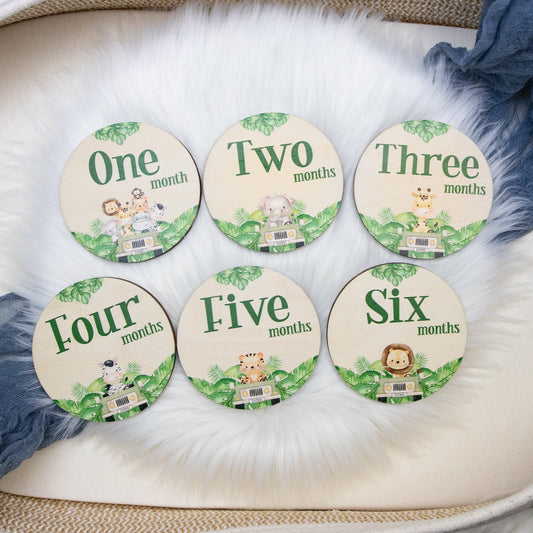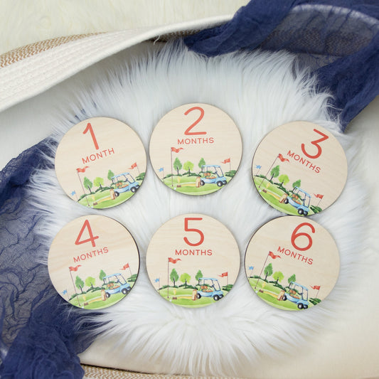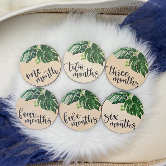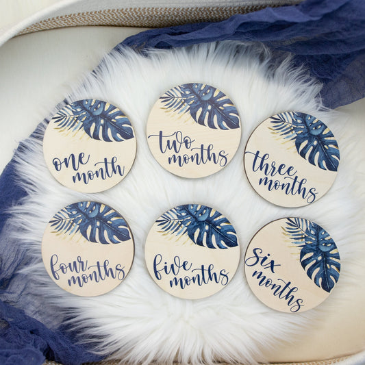 Blue and Gold Palm Leaves Wood Milestone Cards, F56