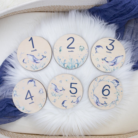 Whale Wood Milestone Cards, Under The Sea Nursery Theme O25