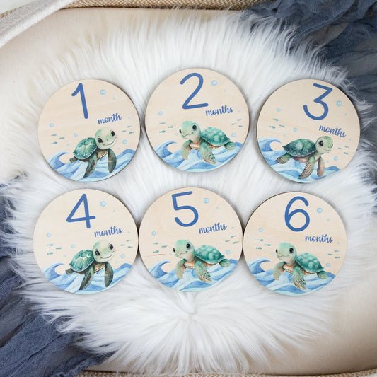 Turtle Milestone Cards, Wood, Under The Sea Nursery Theme O33