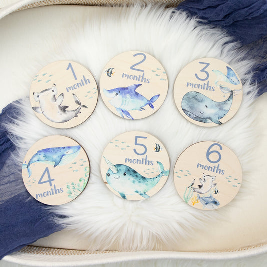 Baby Ocean Waves Wooden Milestone Cards, T61