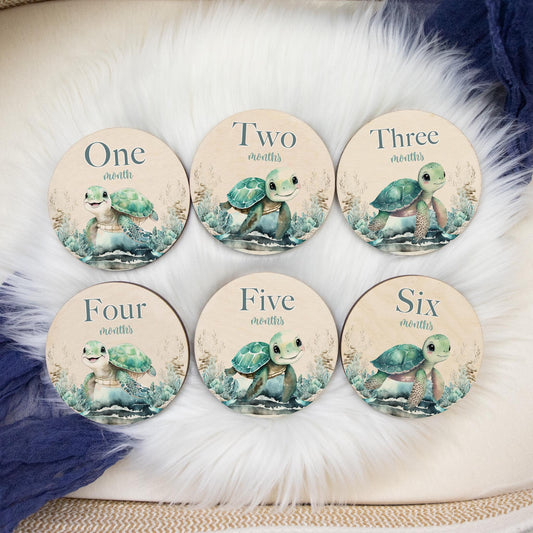 Turtle Milestone Cards, Wood Photo Prop, Under The Sea Nursery Theme O45