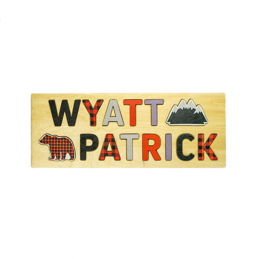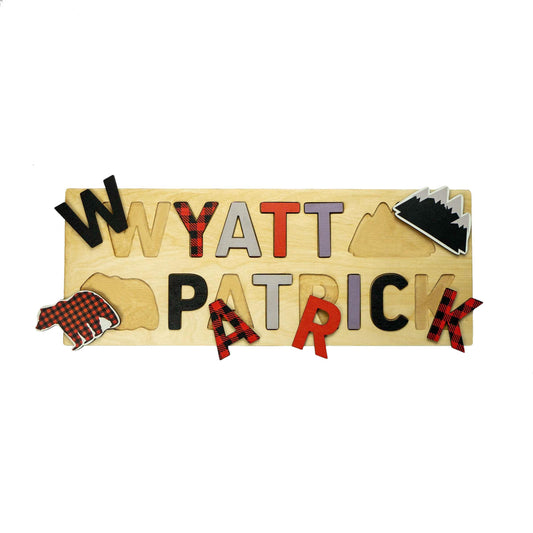 Lumberjack Wooden Name Puzzle, Buffalo Plaid