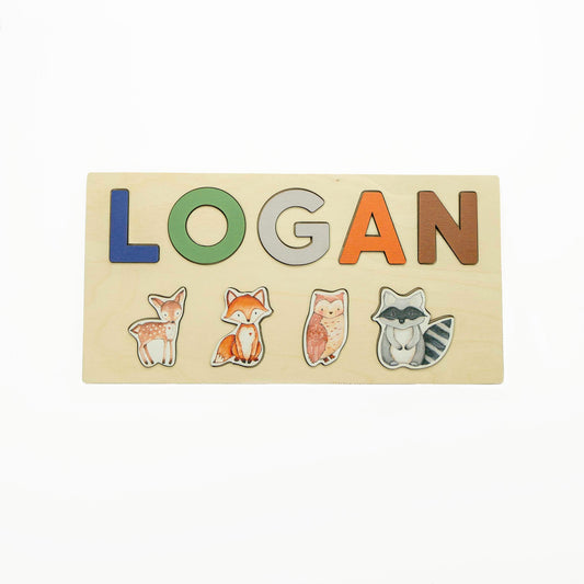 Woodland Name Puzzle, Deer Fox Owl Raccoon Puzzle