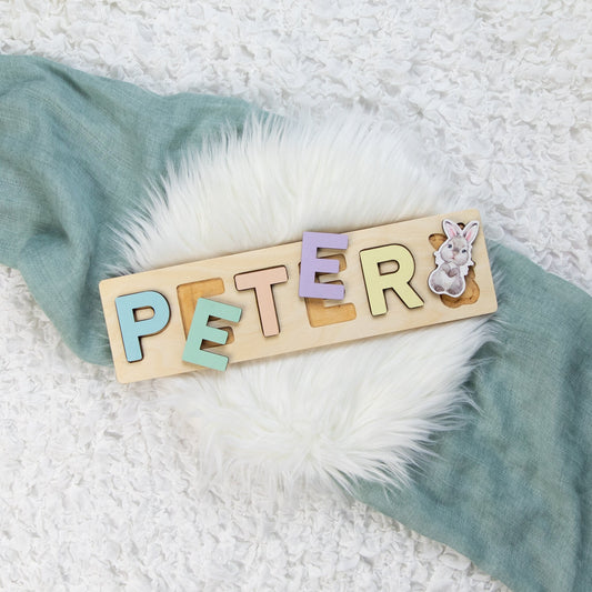 First Easter Gift, Boy Bunny Wood Name Puzzle