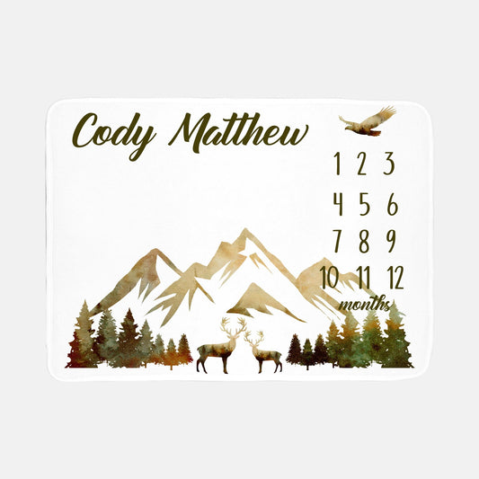 Deer Stag Woodland Baby Boy Milestone Blanket, M5