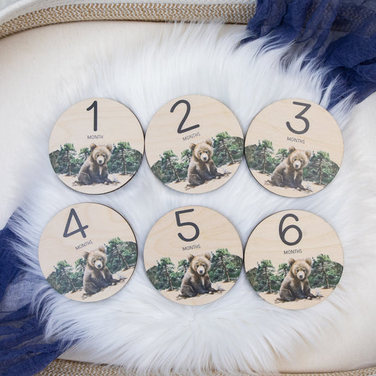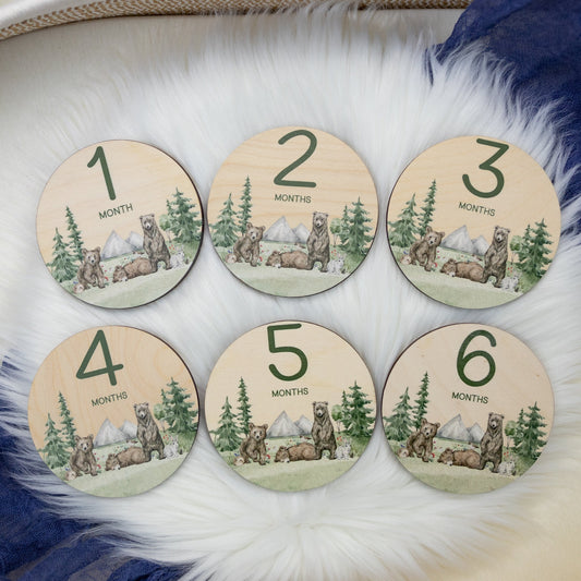 Bear Milestone Cards, Wooden Woodland Markers, W31