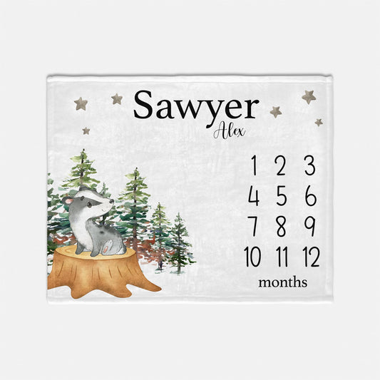 Badger Milestone Blanket, Baby Boy Woodland Badger Blanket, W59
