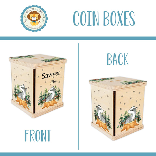 Badger Piggy Bank, Woodland Custom Coin Bank, W59
