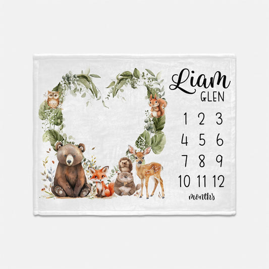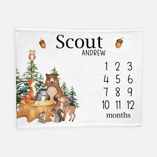 Woodland Milestone Blanket, Baby Boy Forest Animal Theme, W27