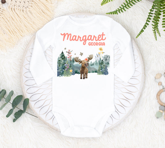Woodland Moose Baby Bodysuit, Bodysuit, Baby Shower Gift, Pregnancy Reveal Baby Shirt, Baby One Piece, Woodland Moose Baby Outfit W44