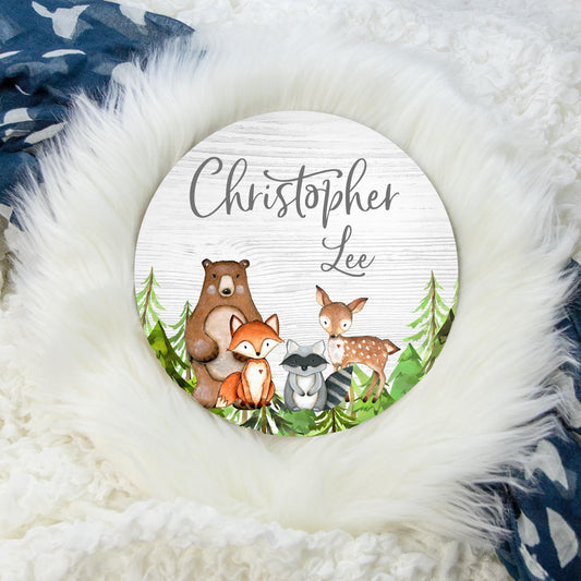Woodland Nursery Sign, Bear Fox Raccoon Deer Wood Sign W1