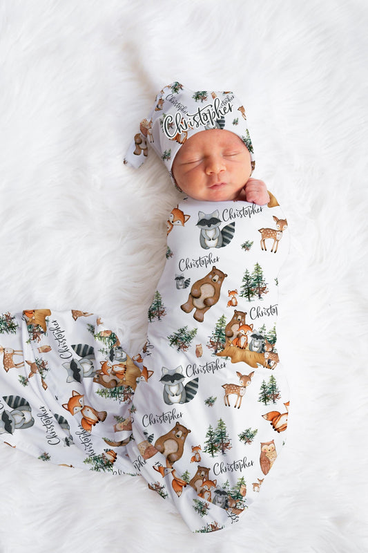 Woodland Nursery Baby Blanket, Forest Animal Bear Fox Deer Blanket W2