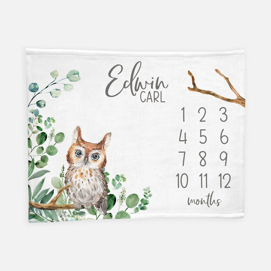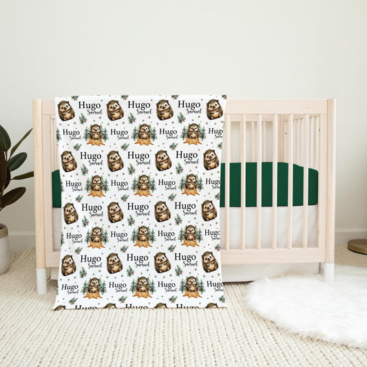Owl Nursery Baby Blanket, Boy Woodland W37