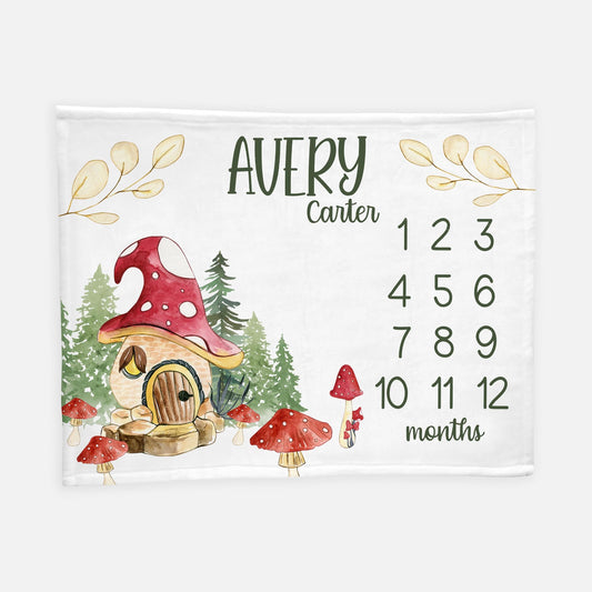 Mushroom Woodland Milestone Blanket, Baby Boy W43