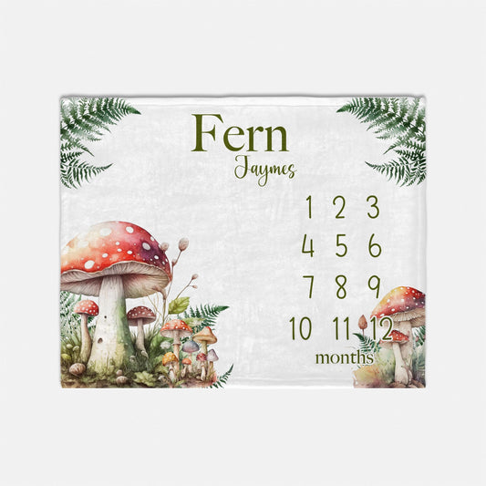 Mushroom and Fern Milestone Blanket, Woodland Boy W57