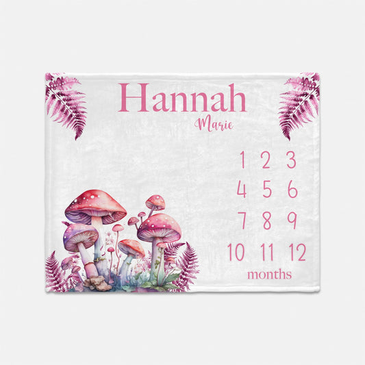 Mushroom and Fern Milestone Blanket, Woodland Girl W64
