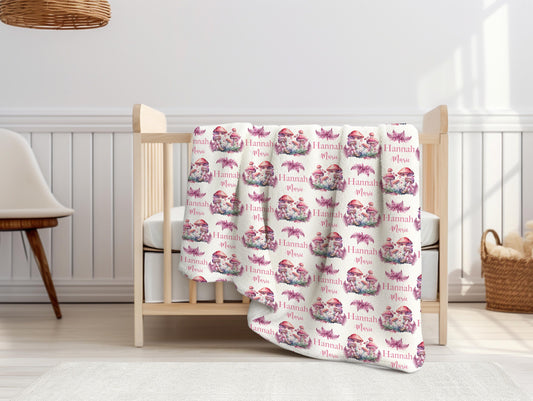 Pink Mushroom and Fern Baby Blanket, Woodland W64