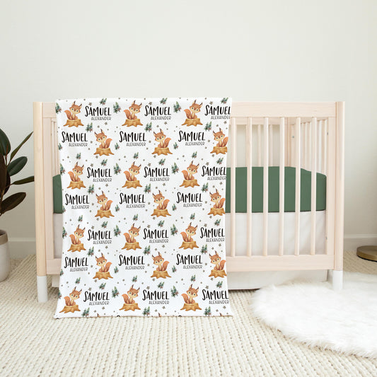Squirrel Nursery Baby Blanket, Woodland Animal, W39