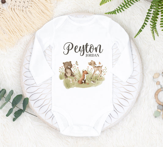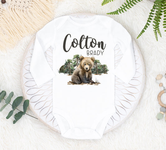 Woodland Baby Bodysuit, Bear Forest Outfit, W53