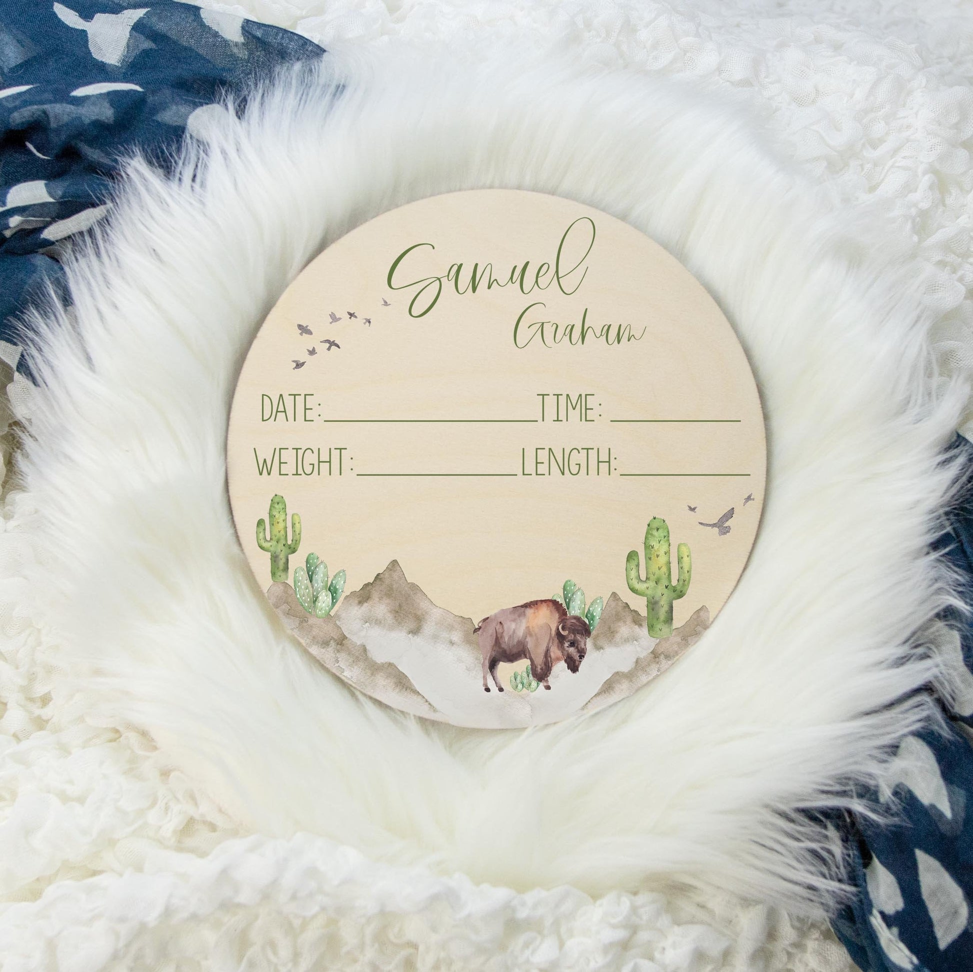 Blue Lion Baby Co.® Round Wood Birth Stat and Name Signs are the perfect keepsake to welcome your new bundle of joy to the world! Use in a Fresh 48 Session at the hospital, or simply display in the nursery, our signs are made to last and one to treasure forever.