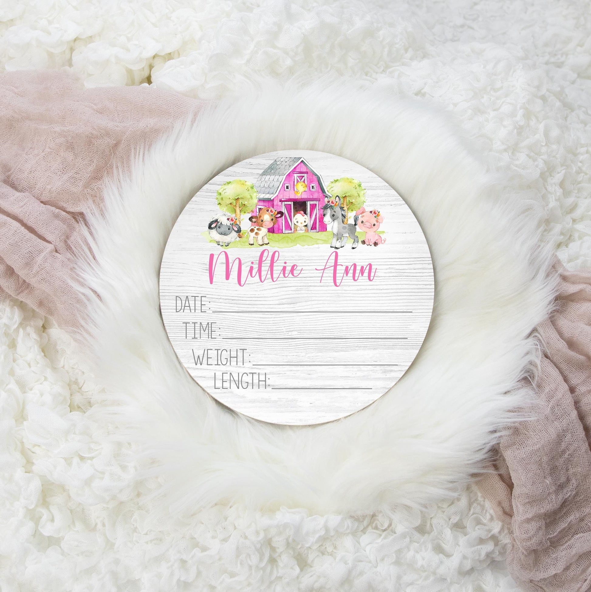 Girl Farm Animal Wooden Birth Stat Sign C2