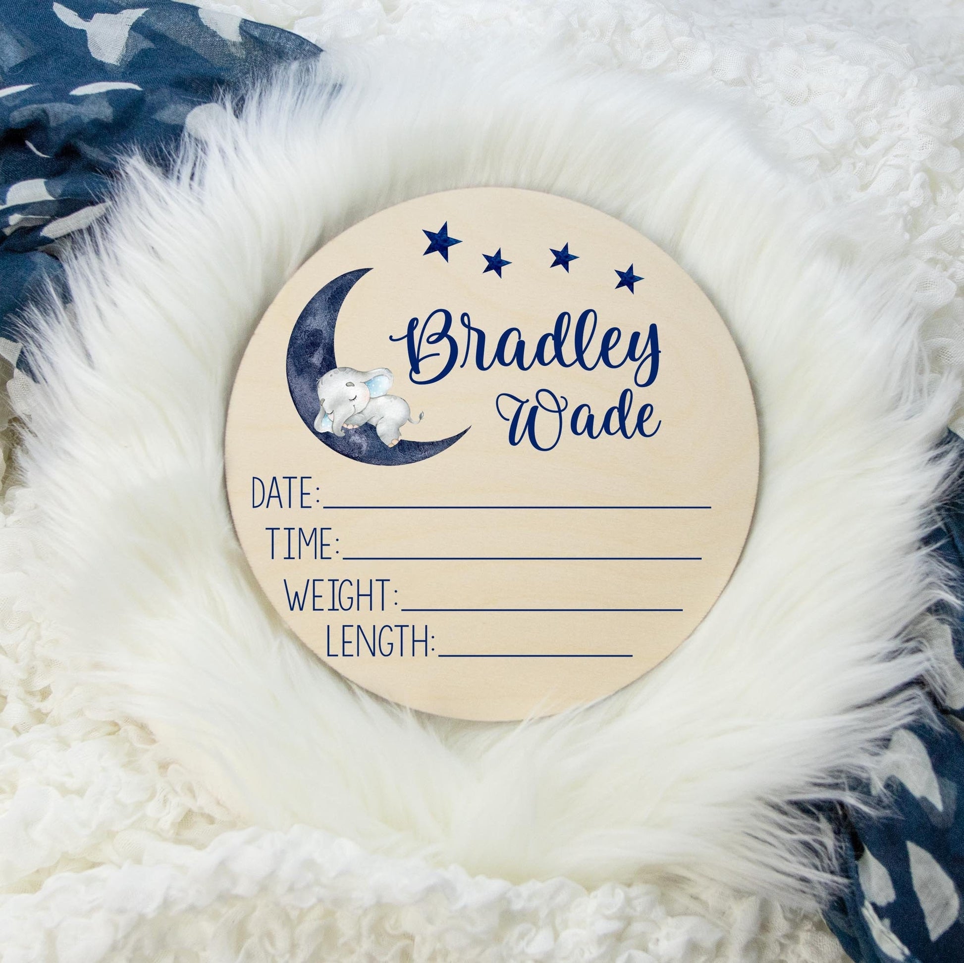 Moon Elephant Wooden Birth Stat Sign T9